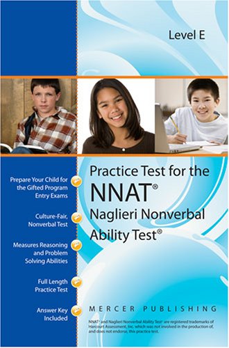 Mercer Publishing has the only available practice materials in the format of the NNAT?* exam. --------------------------------------------------------------------------------- ** Level E of the NNAT is usually given to students in fifth and sixth grade. ** One of the tools for measuring a student's ability to enter the gifted program is the Naglieri Nonverbal Ability Test?* (NNAT?*) published by Harcourt Assessment, Inc. The NNAT?* is a culture-fair, nonverbal measure of reasoning and problem solving abilities. This test does not require English language skills or mathematics