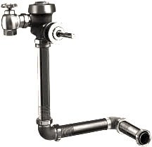 Low Consumption (1.6 gpf) Concealed Water Closet Flushometer, for wall hung 1-1/2" concealed back spud bowls. Features: PERMEX Synthetic Rubber Diaphragm with Dual Filtered Fixed Bypass ADA Compliant Metal Oscillating Non-Hold-Open Handle with Triple Seal Handle Packing 1" I.P.S. Wheel Handle Bak-Chek? Angle Stop Adjustable Tailpiece High Back Pressure Vacuum Breaker Spud Coupling for 1-1/2" Concealed Back Spud Sweat Solder Adapter Elbow Flush Connection Exposed parts Chrome Plated High Copper, Low Zinc Brass Castings for Dezincification Resistance Non-Hold-Open Handle, Fixed M