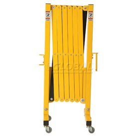 Portable Pedestrian Barricade with Casters Create a barricade anywhere it's needed in seconds. This portable pedestrian barricade has lightweight aluminum slats with steel ends. Weighs only 46 lbs. and measures 40"H when folded. Expands from 16" to 141"L. Yellow and black slats. Includes 4 swivel casters for mobility. 40.00 L. 16.00 W. 2.00 H.